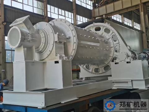 喂料設(shè)備將原料送入進(jìn)料裝置的溜子內(nèi),<150℃原料經(jīng)過進(jìn)料螺旋筒進(jìn)入筒體倉內(nèi),在倉內(nèi)裝有一定數(shù)量的研磨體,由于筒體回轉(zhuǎn),襯板將研磨體帶到一定高度,再利用其降落時(shí)的沖擊能和摩擦能將原料進(jìn)行破碎和研磨,在原料被破碎和研磨的同時(shí),由專設(shè)的引風(fēng)機(jī)經(jīng)過磨機(jī)的出料裝置將已研磨好的細(xì)粉吸出磨機(jī)進(jìn)入下道工序。